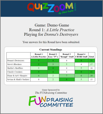 QuizZoom! can be used for Fundraisers, and provides the opportunity for $ponsorships. A person/organization may Sponsor the entire Game or just one Round.